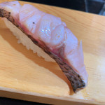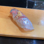 すし屋の城光 - 寒ブリ 上に乗ってるのは泡醤油